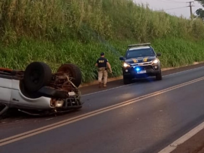 A caminhonete que foi encontrada capotada no início da manhã deste domingo (20) na BR-163, em Mercedes, era roubada, segundo a Polícia Rodoviária Federal (PRF).