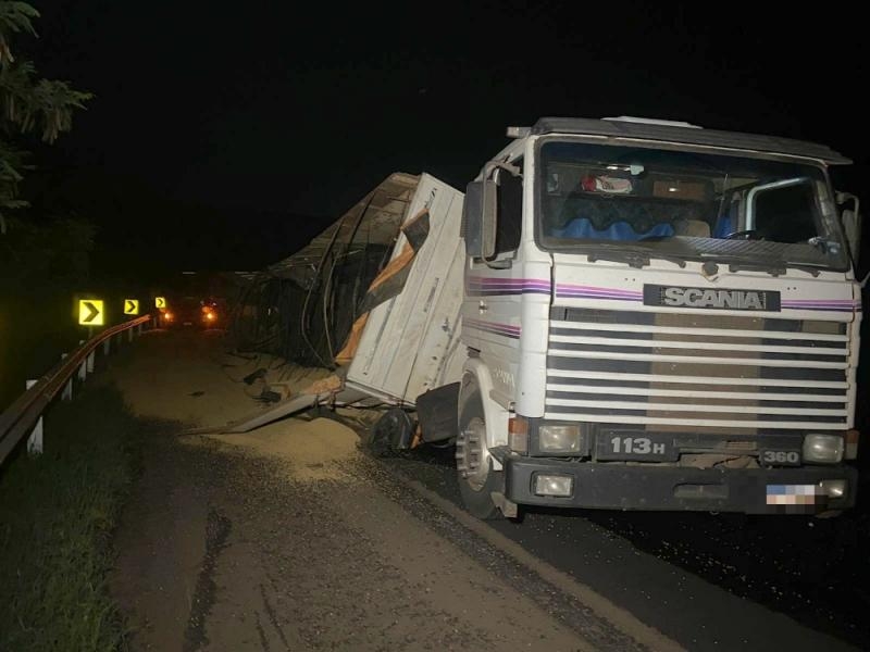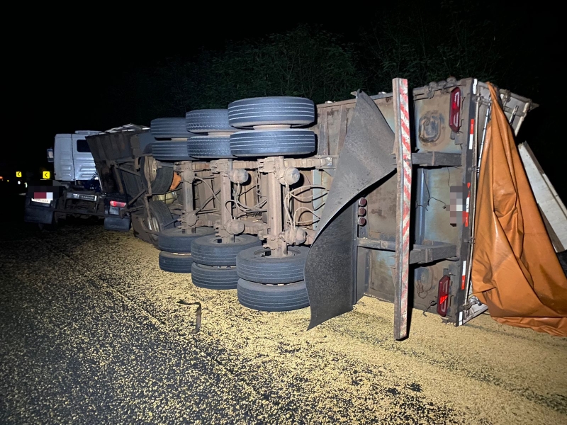 Conforme apurado no local pela equipe do Ponto da Notícia, uma carreta Scania seguia do Mato Grosso do Sul para Toledo, quando o reboque acabou tombando na curva. Com o isso, a carga de soja ficou espalhada e houve vazamento de óleo combustível na pista.