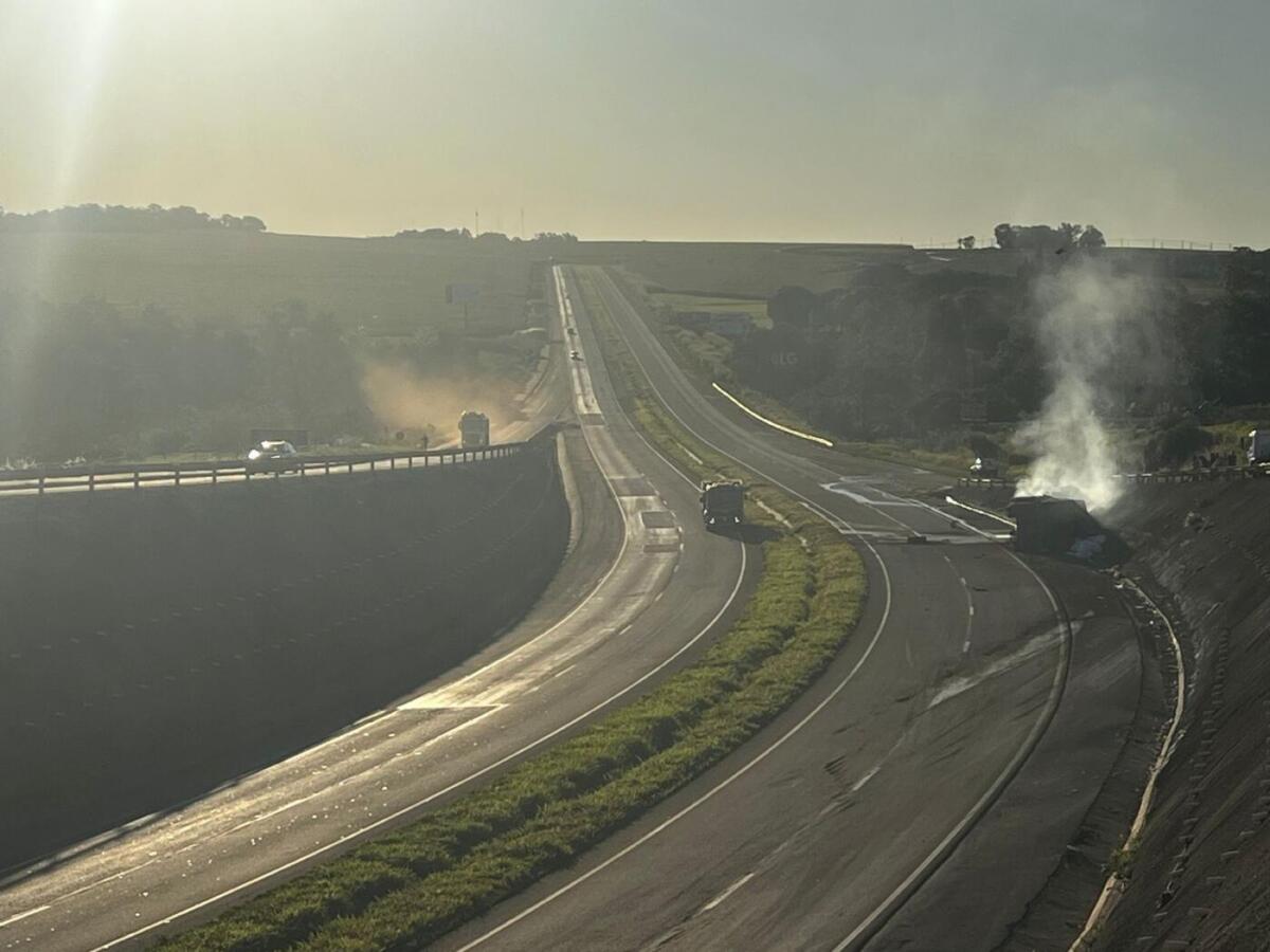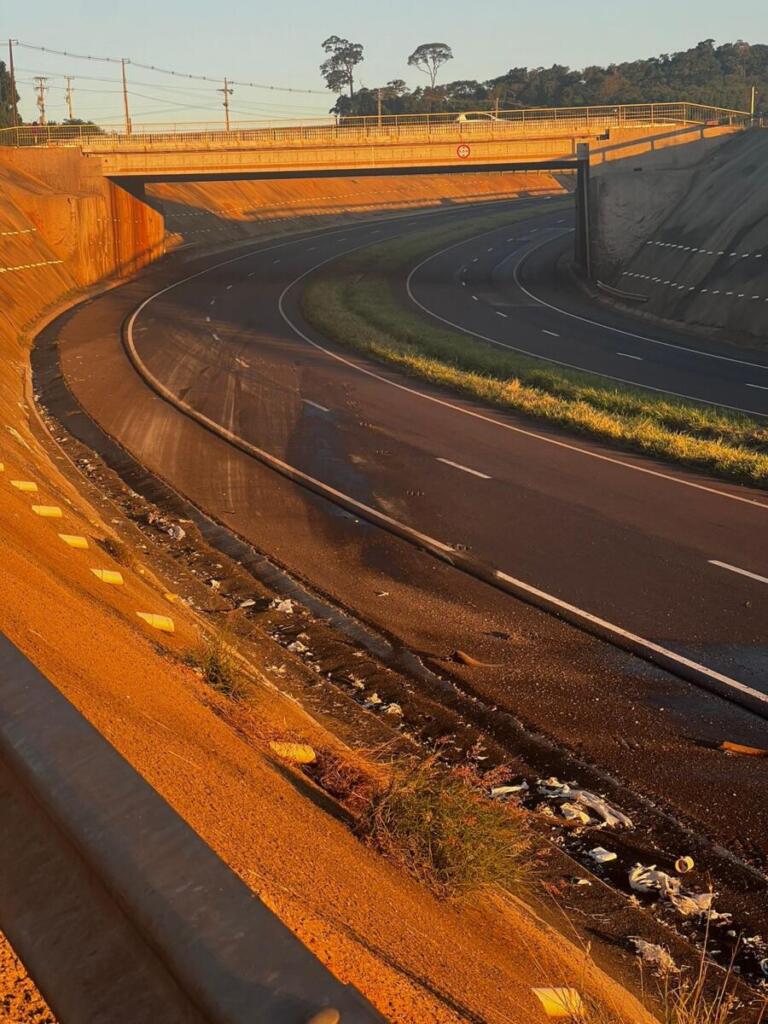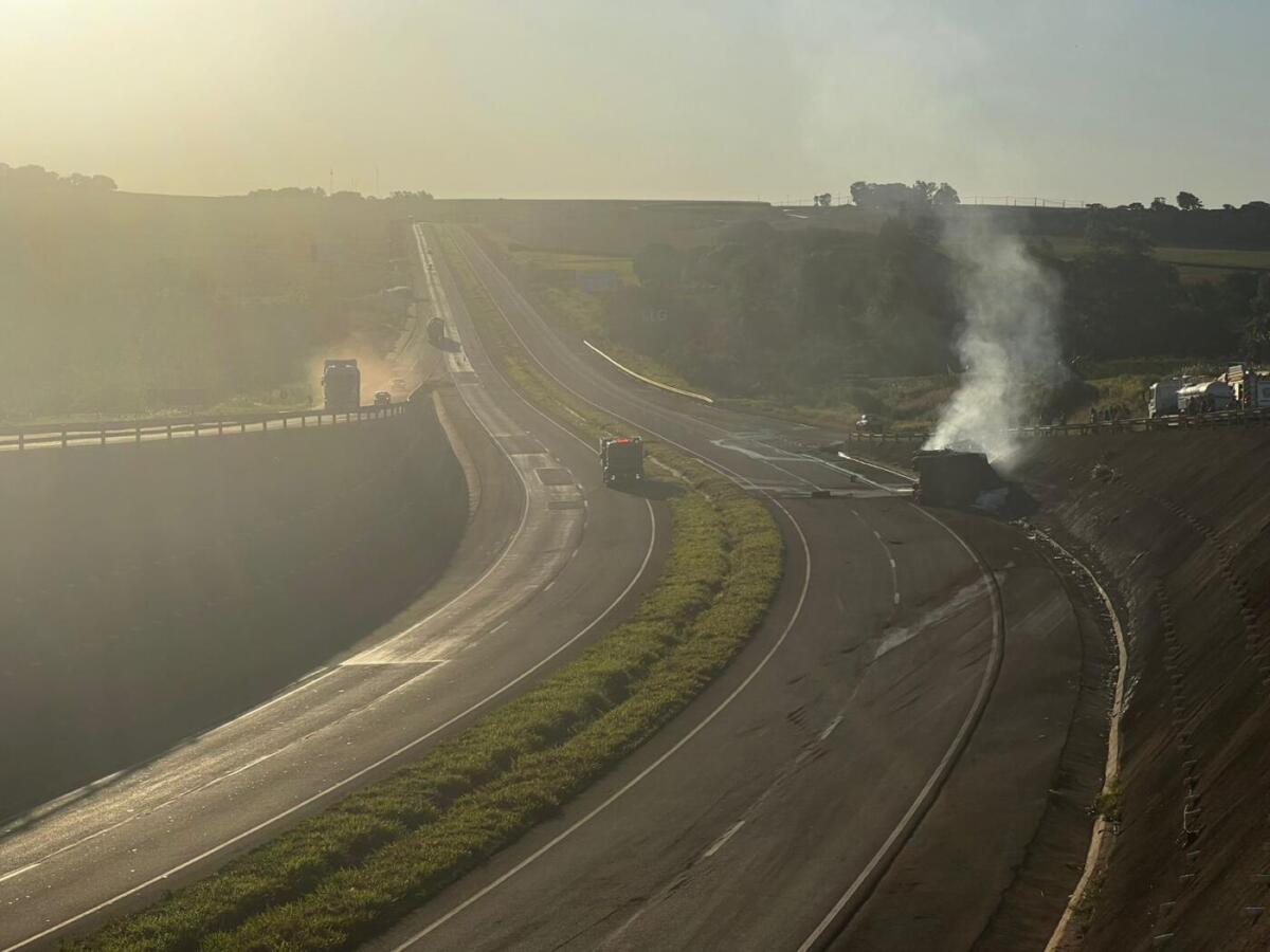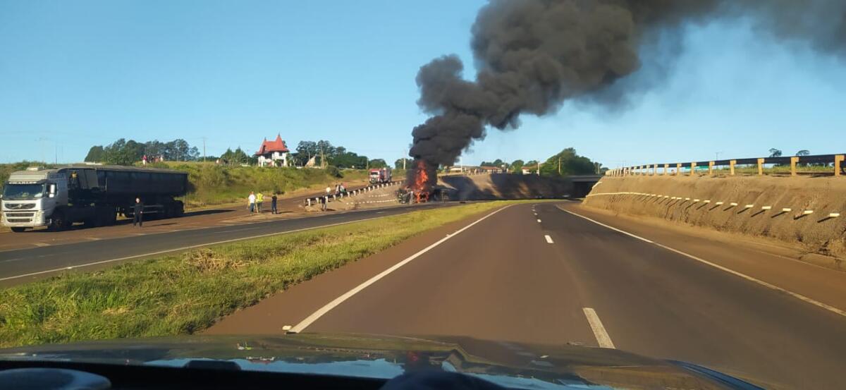 Logo após o tombamento, o caminhão pegou fogo, mas o motorista conseguiu sair a tempo e não sofreu ferimentos. A carreta, um bitrem com placas de Passo Fundo, Rio Grande do Sul, teve a parte do cavalo mecânico totalmente destruída pelo incêndio.