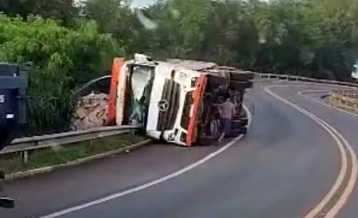 Na última noite, uma carreta Mercedes-Benz seguia pela BR-163, em direção ao Paraná, e ao se aproximar da ponte, acabou tombando em uma curva. A carga de óleo de soja ficou espalhada no local.