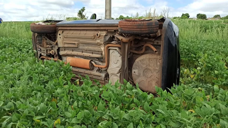 Um Fiat Mobi trafegava sentido Toledo, quando o motorista perdeu o controle em uma curva e capotou. O veículo, que teve diversos danos, entrou em uma lavoura de soja e parou a pelo menos 70 metros da rodovia.
