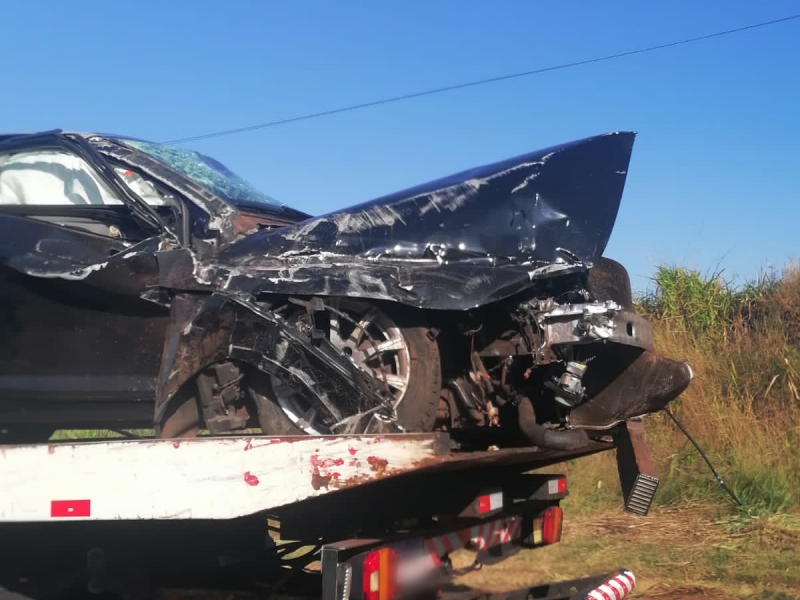 Um veículo de luxo ficou destruído em um acidente na manhã deste domingo (21), na BR-163, entre Mercedes e Guaíra.
