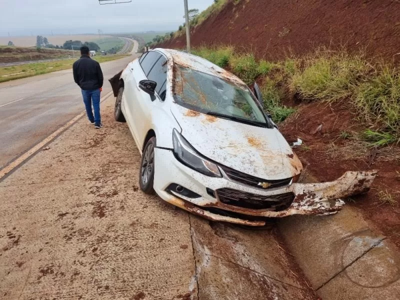 Conforme as informações da CGN, o GM/Cruze seguia pela rodovia, quando saiu da pista, colidiu contra um barranco e capotou.