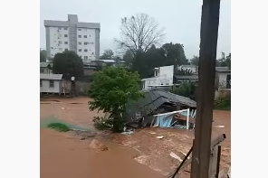 Imagens feitas na manhã desta terça-feira (11) mostram uma casa inteira sendo levada pela correnteza do rio Marrecas em Francisco Beltrão, no Sudoeste do Paraná.