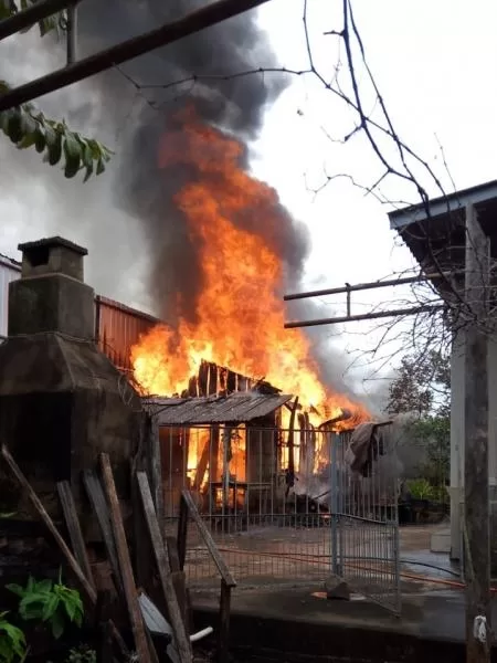 Conforme as informações, a casa fica localizada na Rua Luiz Hasper, nos fundos de um terreno, as chamas de grandes proporções, consumiram completamente a casa.
