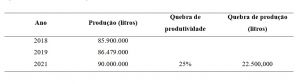 Com a quebra na produção de leite de 22.500.000 litros, considerando o valor de R$ 2,00 o litro de leite, o setor terá prejuízo de R$ 45.000.000,00,. Esse montante não considera o custo adicional com os gastos com ração, desequilibrando ainda mais a cadeia produtiva e aumentando sobremaneira o prejuízo dos agropecuaristas.