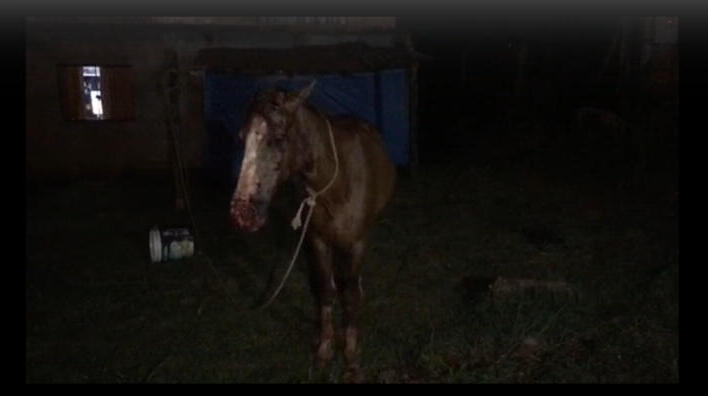 Segundo informações apuradas no local, há dois dias uma ovelha havia sido atacada e desta vez foi um cavalo.