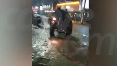 Para completar o combo de cenas inusitadas, o vídeo ainda mostra um trator estacionado na esquina em frente à casa noturna. Em outra imagem, publicada nas redes posteriormente, é possível ver três pessoas deixando o local com o maquinário.