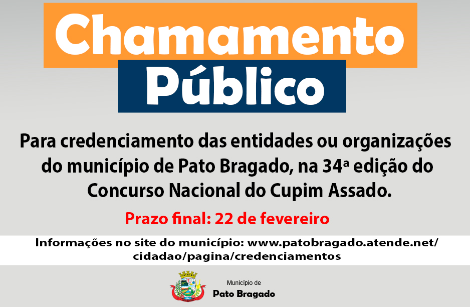 O chamamento público para credenciamento das entidades e associações locais interessadas em serem parceiras no evento, está em andamento e encerra na sexta-feira (22). Informações acerca do processo podem ser obtidas pelo endereço (clique aqui).