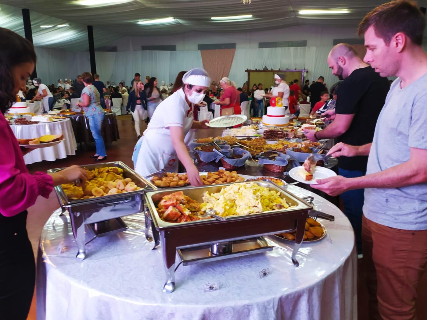 O café começou a ser servido pelas 18 horas e o Pavilhão da Igreja Evangélica, onde está sendo realizado o evento, ficou lotado.