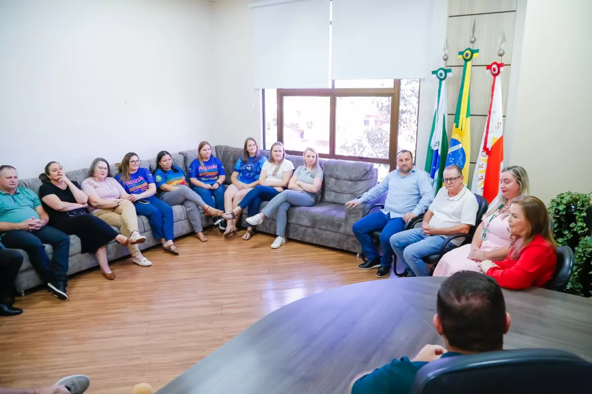 A visita teve início no Gabinete do Prefeito Laerton Weber, onde a secretária foi recepcionada por autoridades municipais e secretários. Na sequência, a comitiva se deslocou até o Centro-Dia, onde Leandre conversou com servidores e com os idosos atendidos pelo serviço.