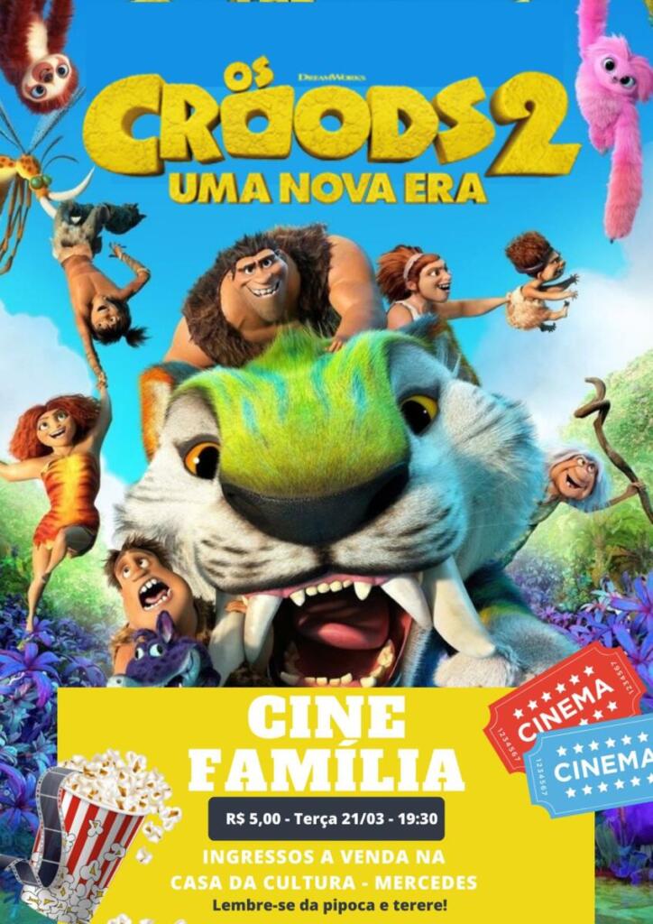 O filme “Os Croods 2: Uma Nova Era” será exibido na noite desta terça-feira (21), na Casa da Cultura de Mercedes, às 19h30. O projeto “Cine Família” está sendo desenvolvido pelo Departamento de Cultura e pela Miss Mercedes, Gabriela Genz.