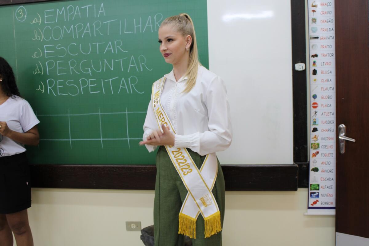 Na última semana, a Miss foi às escolas do município divulgar o projeto e convidar alunos e famílias para participarem. Os ingressos para o filme custarão R$ 5 e o valor arrecadado será convertido em ações com mulheres carentes de Mercedes.