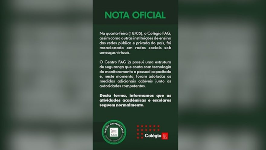 “Na quarta-feira (18), o Colégio FAG, assim como outras instituições de ensino da rede pública e privada do país, foi mencionado em redes sociais sob ameaças virtuais.