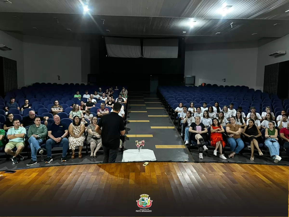 Também participaram do evento a representante do Núcleo Regional de Educação (NRE) de Toledo, Carla Alice Schimanko, secretária municipal de Educação e Cultura, Cristiane Bonatto, presidente da Câmara de Vereadores, Ademir Kirsten, e o presidente da Associação Comercial e Industrial Pato Bragado (Acibra), Ederson Knapp.