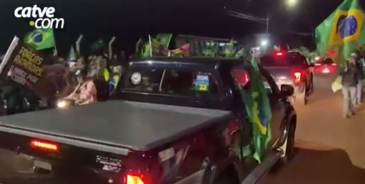 Com bandeiras do Brasil e buzinaço, o grupo cantou o hino brasileiro e protestava.