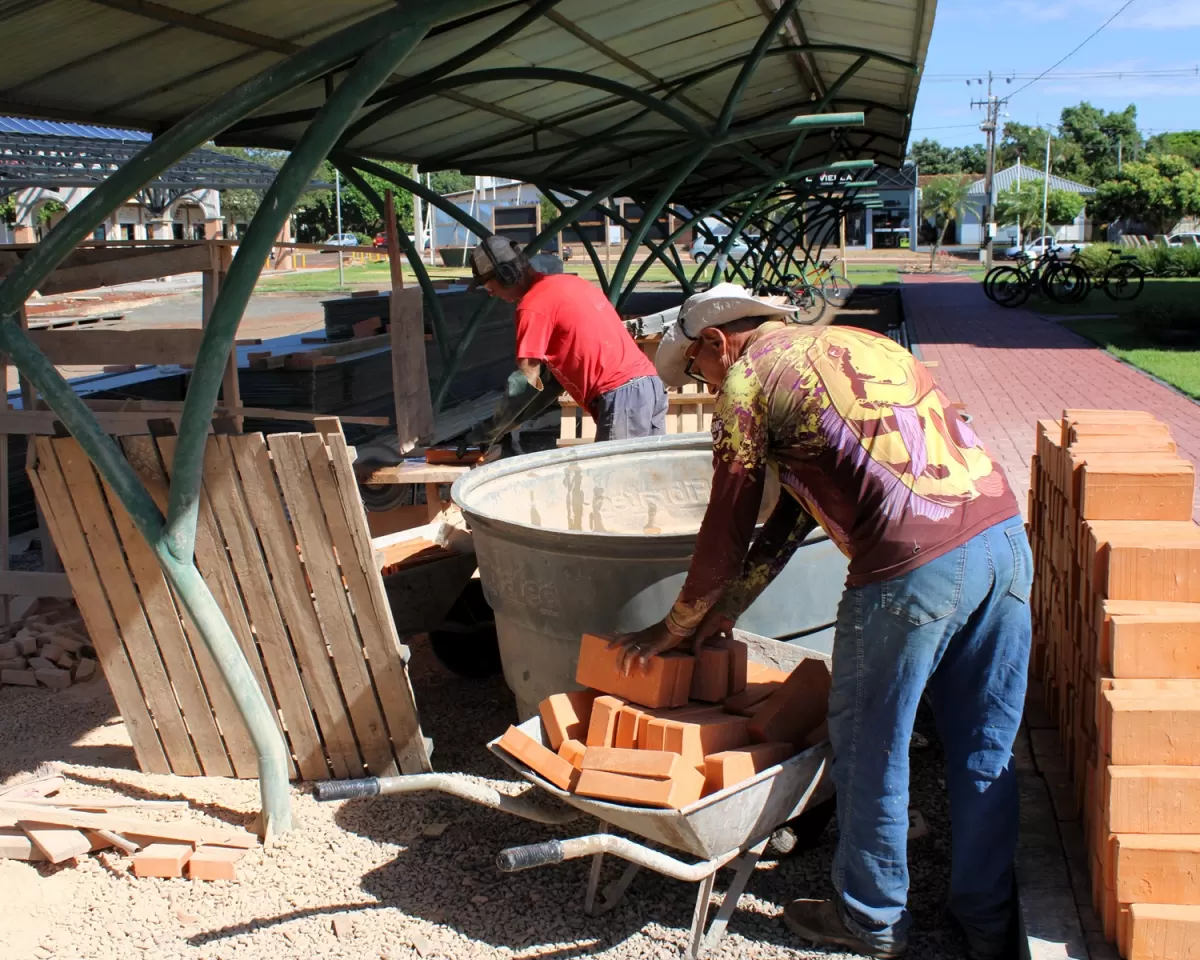 Outro avanço importante é que o calçamento em pavers já foi concluído, incluindo acessibilidade para pessoas com deficiência visual, garantindo segurança e inclusão no acesso ao espaço.