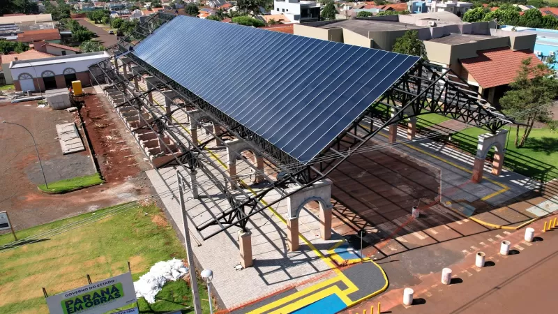 Além da cobertura, a obra avança em diversas frentes de acabamento. Está em andamento a instalação dos tijolos maciços aparentes, o calfinamento das estruturas para posterior pintura, bem como a instalação do sistema de para-raios e da rede elétrica. Já nos próximos dias, o local deverá receber a capa asfáltica, etapa importante para a finalização da infraestrutura.