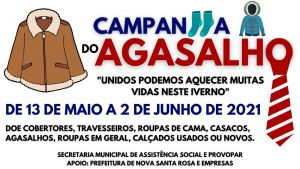 A Prefeitura de Nova Santa Rosa, por meio da Secretaria de Assistência Social, e o Programa do Voluntariado Paranaense (Provopar) estão promovendo a Campanha do Agasalho deste ano, que tem como tema “Unidos podemos aquecer muitas vidas neste inverno”.