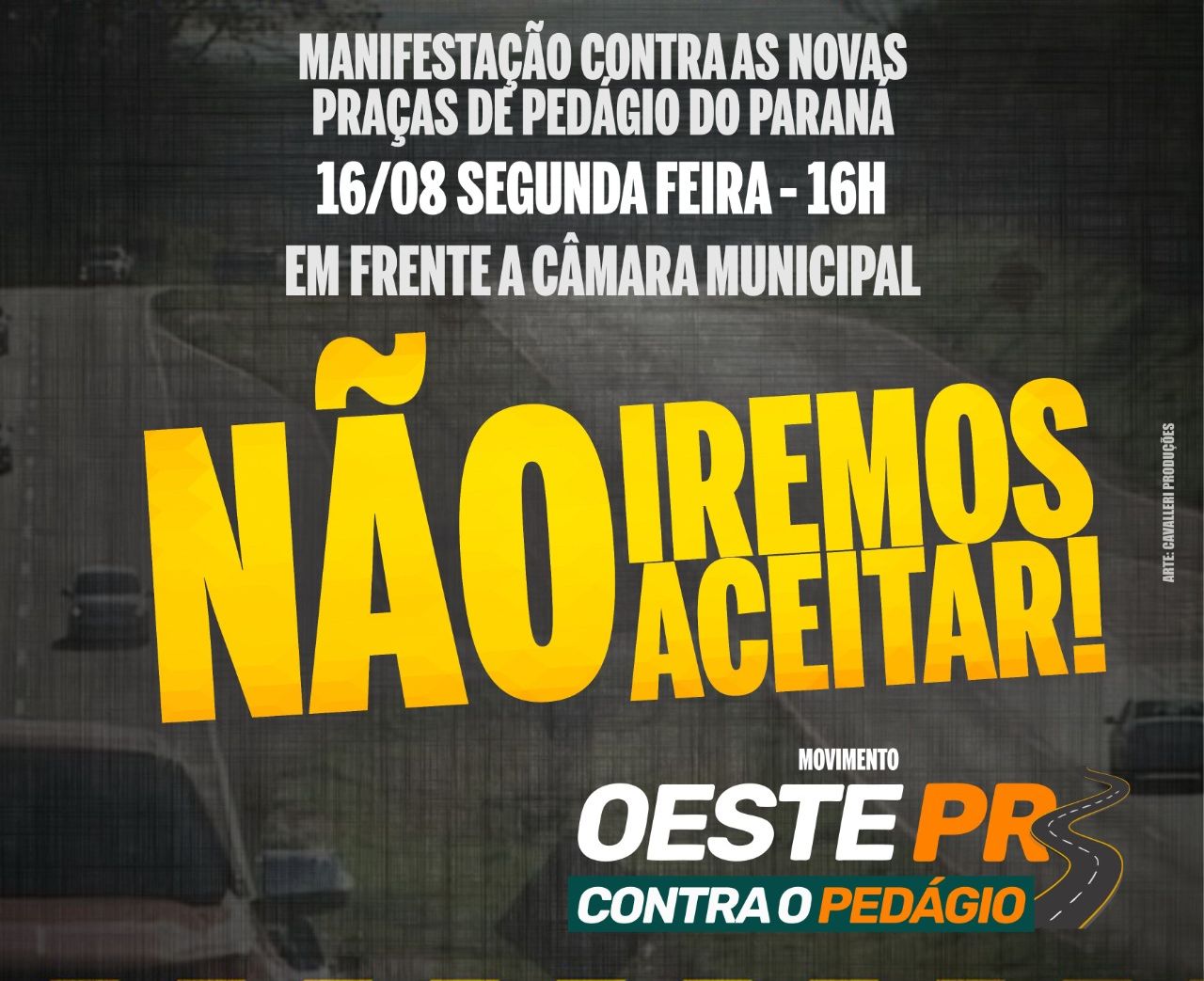 Em reação contrária à implantação da praça, grupos estão se formando neste fim de semana pelas redes sociais e WhatsApp, engrossando um movimento intitulado “Oeste contra o pedágio”. Em um deles, centenas de moradores da região organizam uma manifestação para esta segunda-feira (16), a partir das 16 horas, em frente às Câmaras de Vereadores de Cascavel e Toledo.