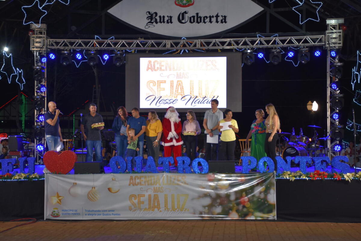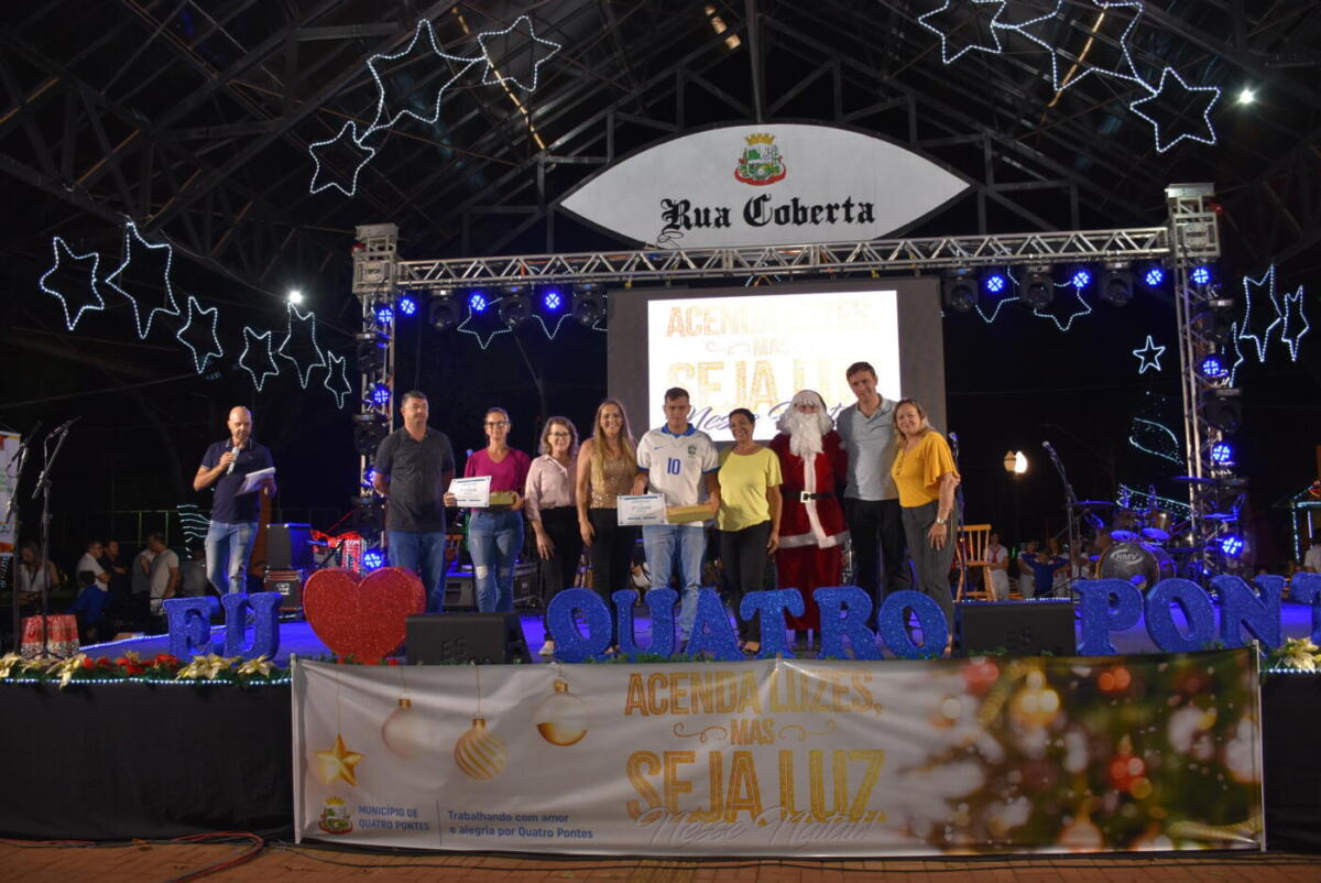 O Concurso de Decoração Natalina ‘Acenda luzes, mas seja luz nesse Natal’ de Quatro Pontes teve os ganhadores revelados pelas Secretarias de Educação, Cultura e Esportes e de Desenvolvimento Econômico ontem (18), na rua coberta. O concurso contemplou 23 inscritos, divididos nas categorias residências urbanas, residências da zona rural e empresas e indústrias.