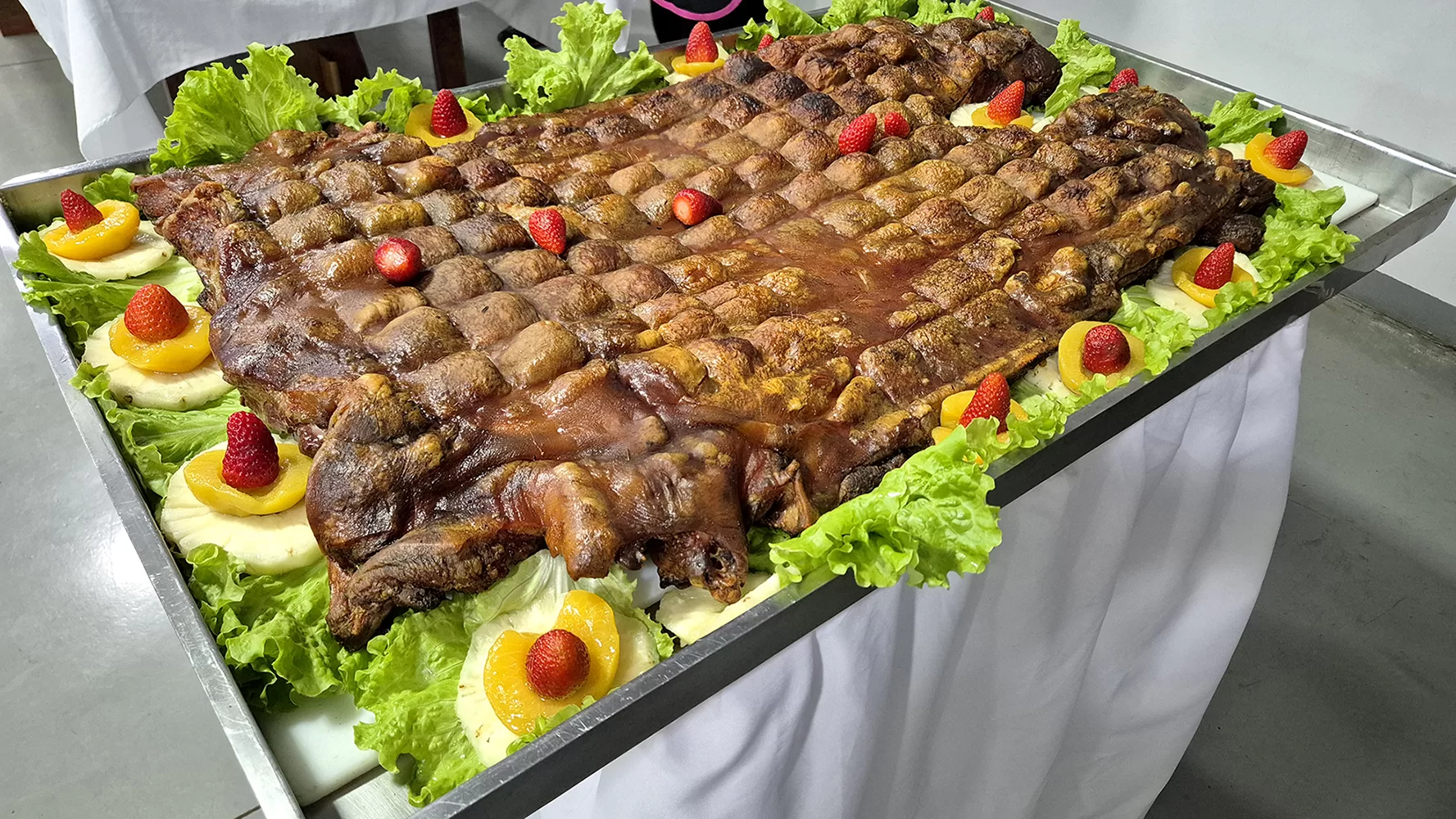 Apresentação e aparência do leitão (dourado e brilhante).