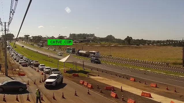 Nas imagens ao vivo da câmera da CATVE é possível conferir a grande movimentação de carros, caminhões e ônibus no Trevo Cataratas e filas se formando. Apesar do grande número de veículos, o trânsito flui de forma lenta.
