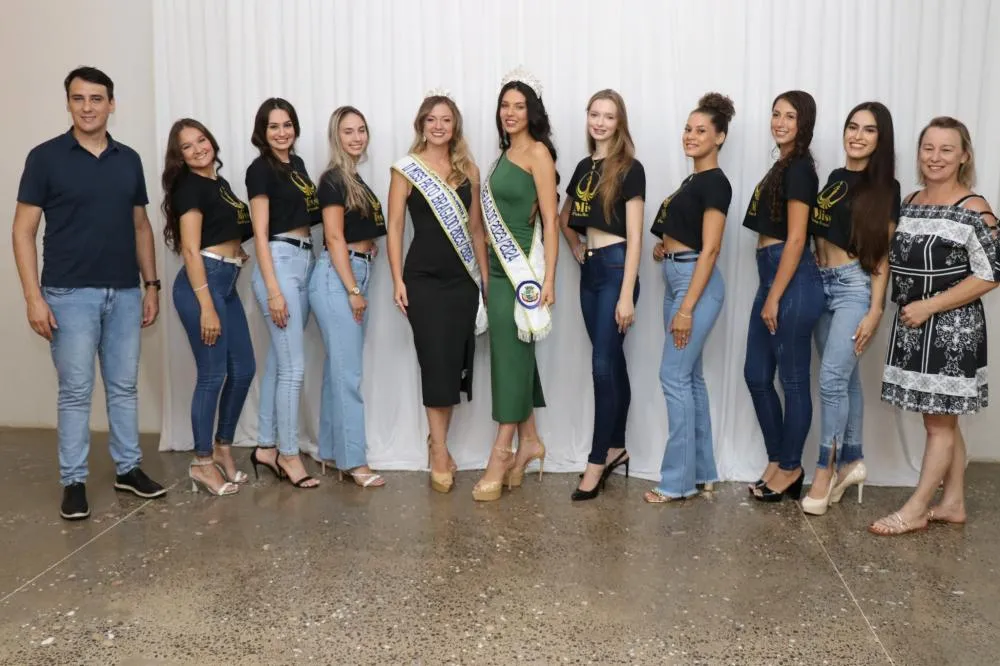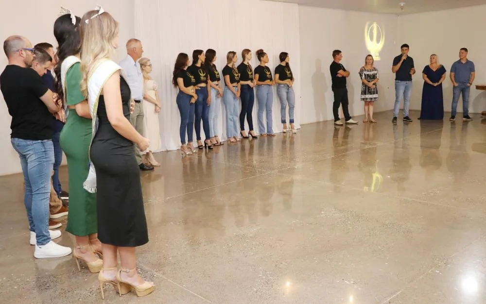 Prefeito John Nodari, vice-prefeita, Simoni Tornquist, presidente da Câmara de vereadores, Dante Mundt, vereadores Ademir Kirsten, Anderson Leindecker, Márcia Petry, Rogério Marholt, Marli Wolff, presidente da Comissão Central organizadora (CCO), Lucas Blatt, presidente da Acibra, secretária de Educação e Cultura, Cristiane Bonatto, presidente da Acibra, Ederson Knapp e da União das Associações para a promoção de Eventos (Unipropb), Elton Mendes, Miss 2023/2024, Mariana Germano Pereira Wille, e 2ª Miss e Miss Fotogenia, Ana Paula Bressan, secretários e familiares das candidatas integraram o evento.