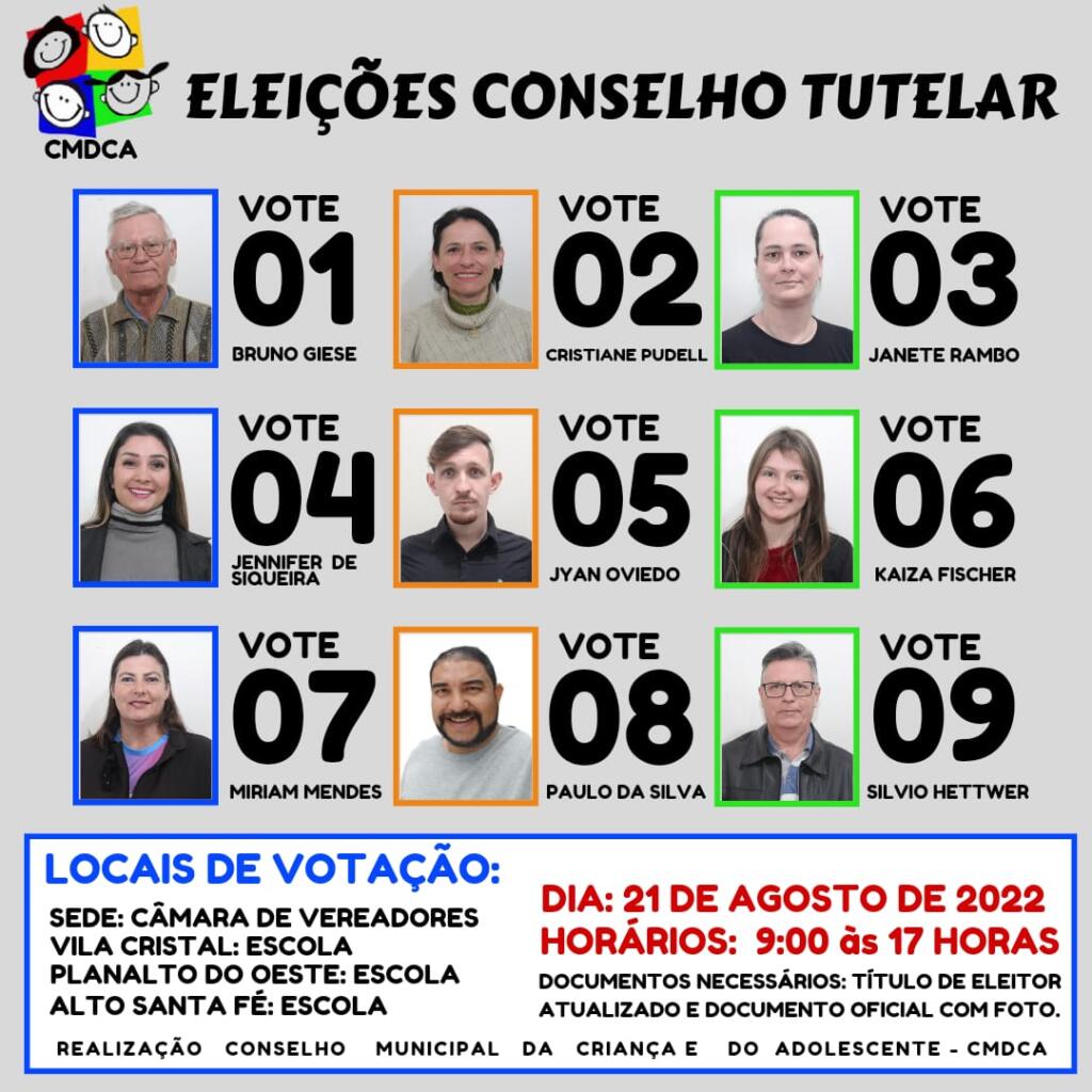 Neste domingo (21), das 9 horas às 17 horas será realizada a escolha do mandato-tampão do Conselho Tutelar de Nova Santa Rosa. Os locais de votação serão: