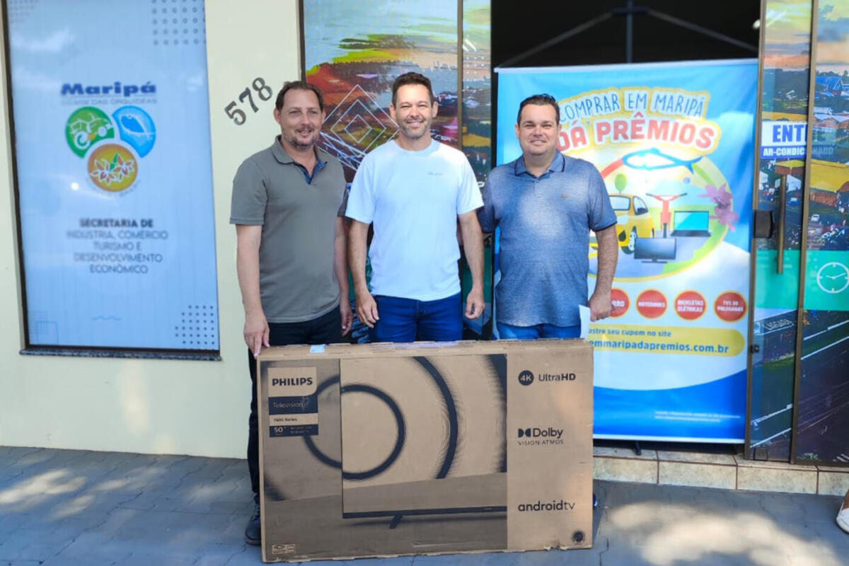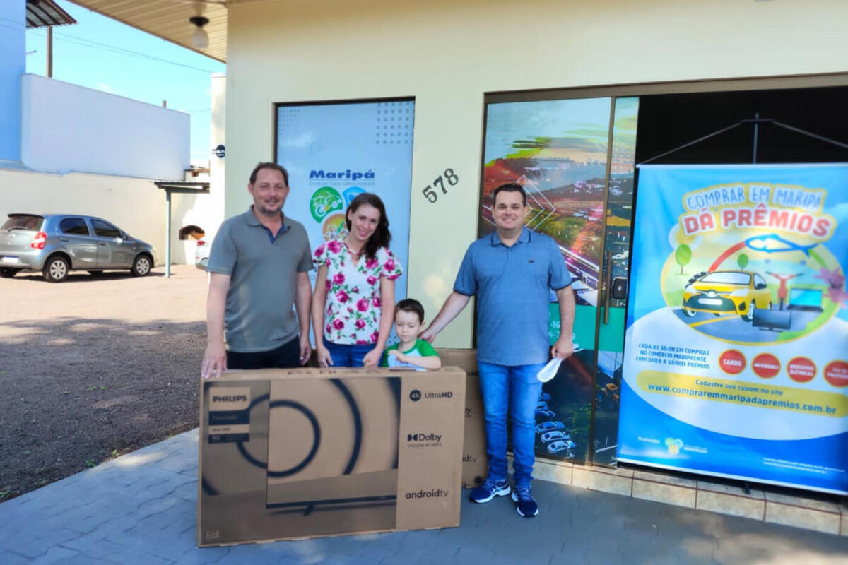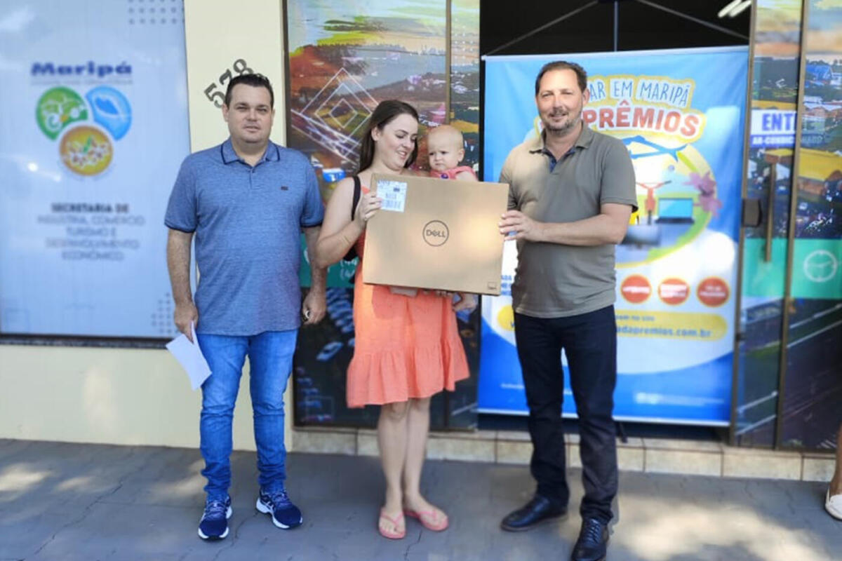 O prefeito Rodrigo Schanoski e o secretário de Indústria, Comércio, Turismo e Desenvolvimento Econômico Eder Kuroli realizaram, no dia 5 de janeiro, a entrega da premiação aos ganhadores da 2ª edição da campanha Comprar em Maripá Dá Prêmios. Os vencedores já haviam sido divulgados no dia 31 de dezembro, durante a programação da virada, no Lago Municipal.