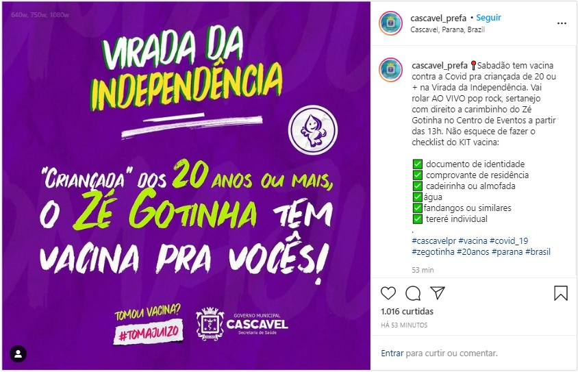 Chama a atenção a divulgação da prefeitura em suas redes sociais: