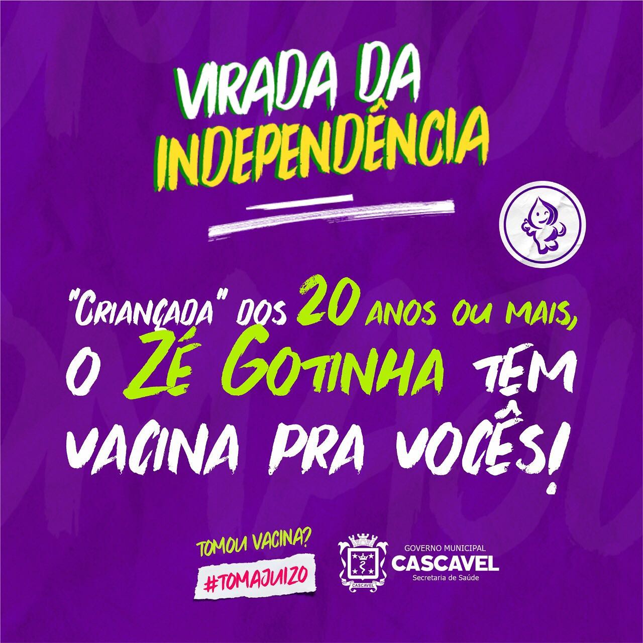 A Virada da Independência, com o slogan “Tomou Vacina” #TomaJuizo”, está sendo organizada para estimular uma onda de engajamento, com foco na conscientização da população no pós-vacina contra a Covid-19.