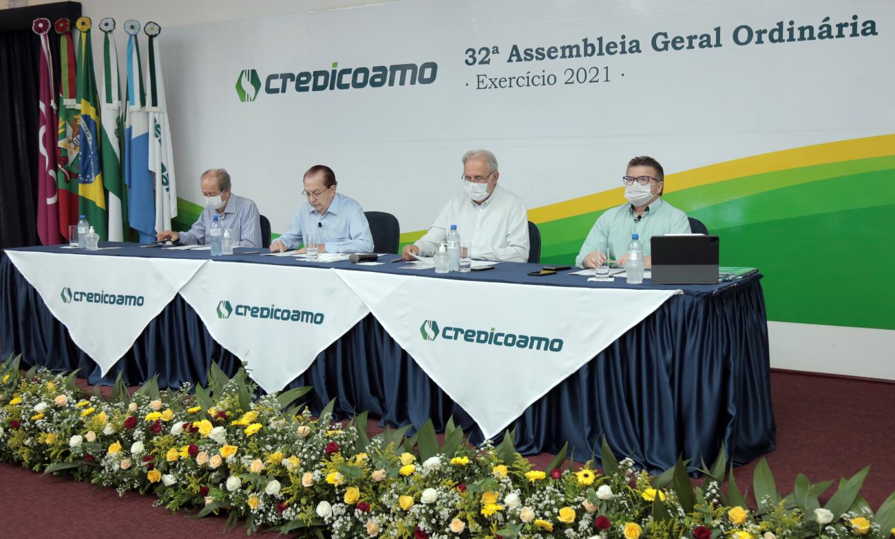 A Credicoamo Crédito Rural Cooperativa realizou na manhã desta quinta-feira (24), a 32ª Assembleia Geral Ordinária (AGO). Pelo segundo ano consecutivo, a AGO foi no formato virtual, transmitida ao vivo da sede administrativa da cooperativa, em Campo Mourão (PR). Os associados do Paraná, Santa Catarina e Mato Grosso do Sul participaram por meio de uma plataforma digital, onde votaram e aprovaram os números referentes ao exercício de 2021.