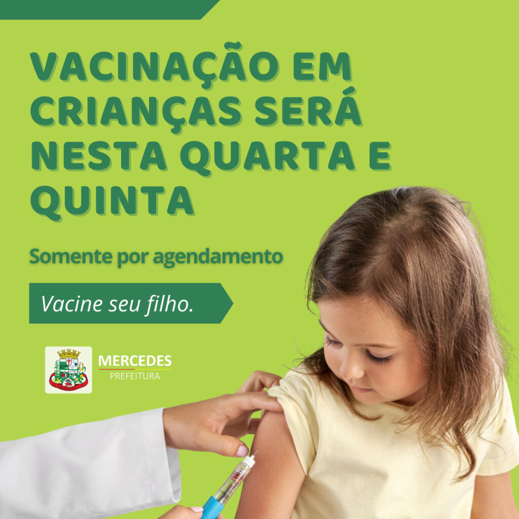 A Secretaria de Saúde de Mercedes dará sequência nesta quarta (18) e quinta-feira (19), à vacinação contra a Covid-19 em crianças a partir de seis meses de vida.