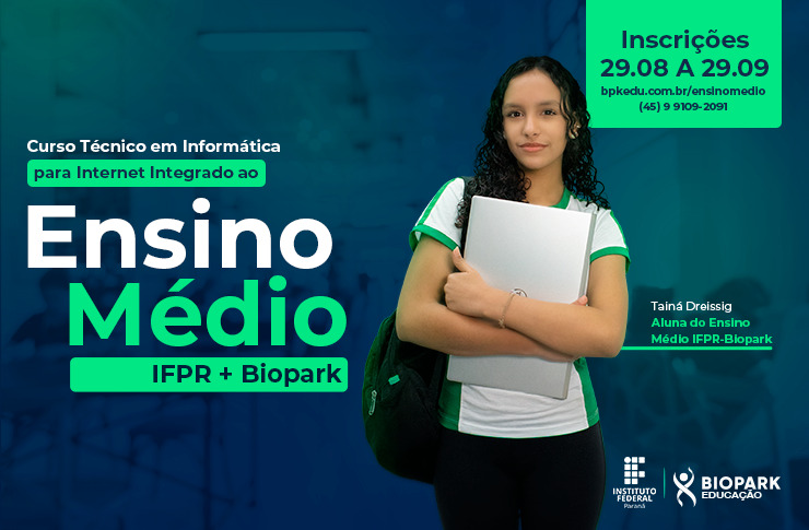 Estão abertas até o dia 29 de setembro as inscrições para curso Técnico em Informática Integrado ao Ensino Médio do IFPR e Biopark. O curso é totalmente gratuito e além do curso Técnico em Informática junto com toda a base do Ensino Médio Regular, os alunos terão contato com professores experientes e acesso aos benefícios de infraestrutura e às oportunidades das empresas inseridas no Biopark.