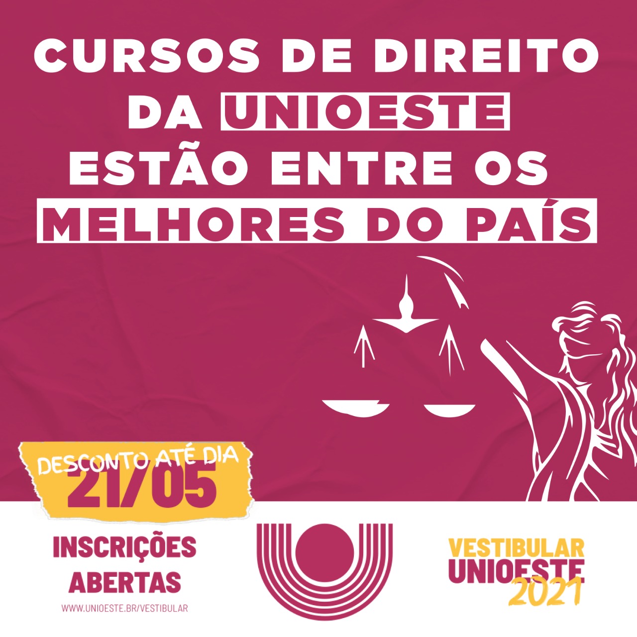 Os cursos de Direito da Universidade Estadual do Oeste do Paraná (Unioeste), em funcionamento nos campi de Marechal Candido Rondon, Francisco Beltrão e Foz do Iguaçu, receberam a nota 5 no Exame Nacional de Desempenho dos Estudantes (Enade), realizado pelo Ministério da Educação (MEC. Além dessa notícia, o curso de Direito da Unioeste está entre os dez mais bem avaliados no exame nacional da Ordem dos Advogados do Brasil (OAB) no Paraná, com os três primeiros lugares: Francisco Beltrão, com 73,68% dos aprovados, Foz do Iguaçu fez 52,63% e Marechal Cândido Rondon, 44%. Ambos resultados (Enade e OAB) revelam que o curso de Direito da Unioeste está entre os melhores do País e os dez mais bem cotados do Estado.