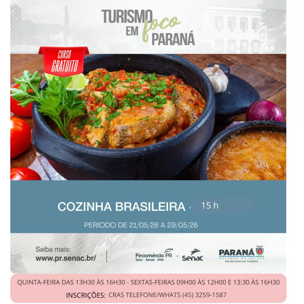 Já no município de São José das Palmeiras, será ofertado o curso “Cozinha Brasileira”, com carga horária de 15 horas. As aulas acontecem entre os dias 21 e 29 de maio de 2026, com encontros às quintas-feiras, das 13h30 às 16h30, e às sextas-feiras, das 9 às 12 horas e das 13h30 às 16h30. O curso tem como foco o ensino de receitas e técnicas da culinária nacional. Inscrições no link (Clique aqui).