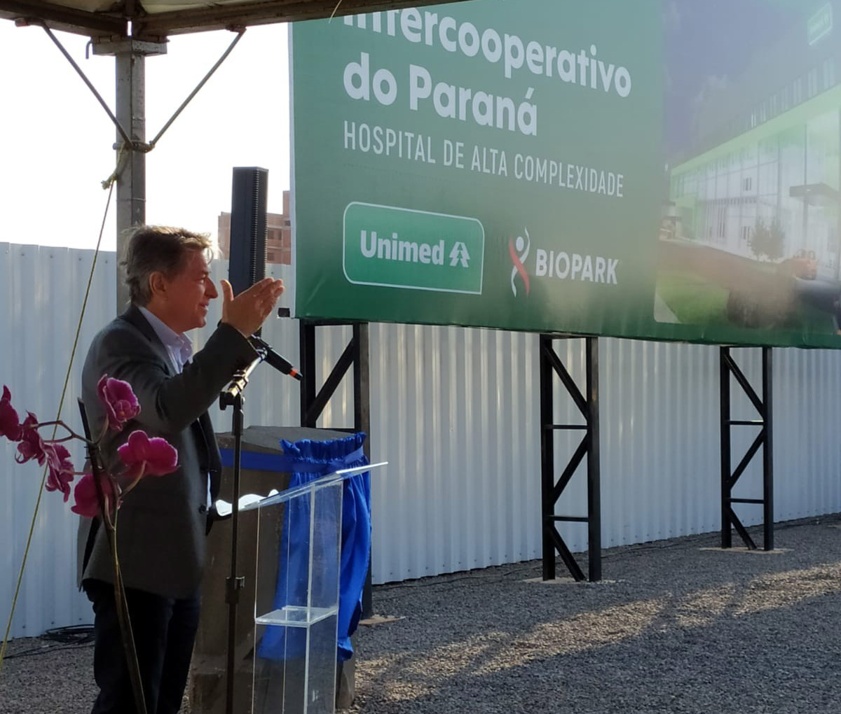 O hospital é fruto de uma parceria entre o Biopark, que fez a doação de um terreno de 20 mil metros quadrados, e o Sistema Unimed Federação do Paraná.