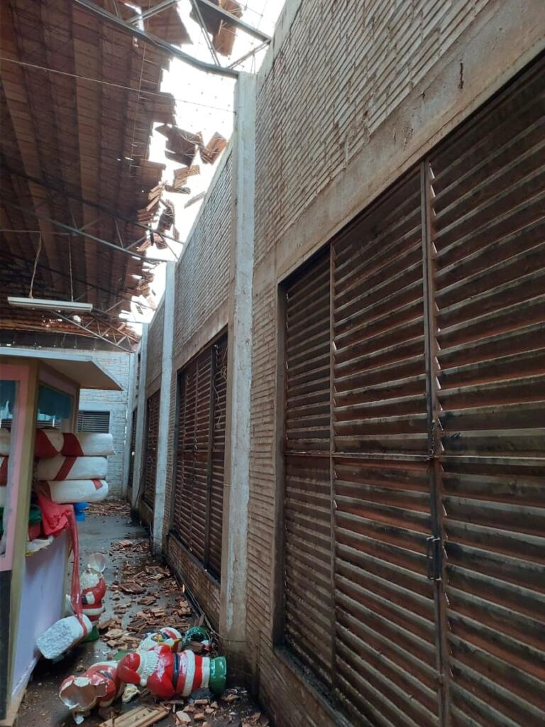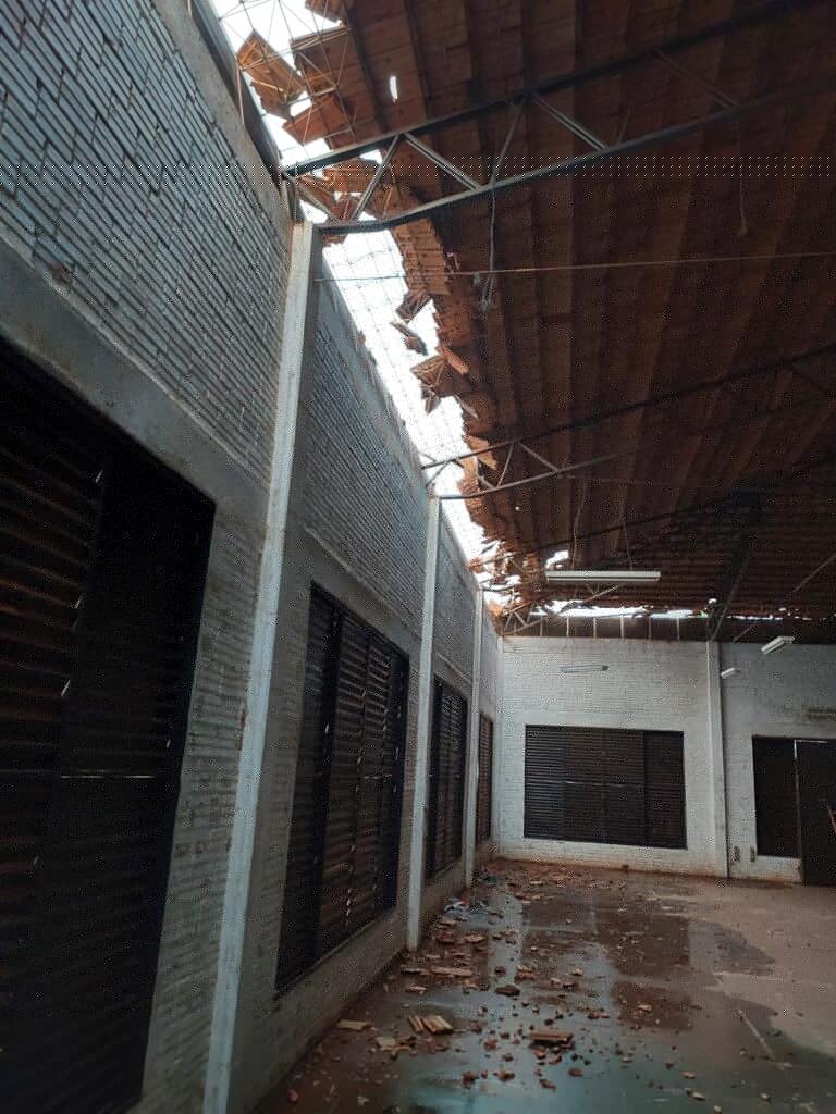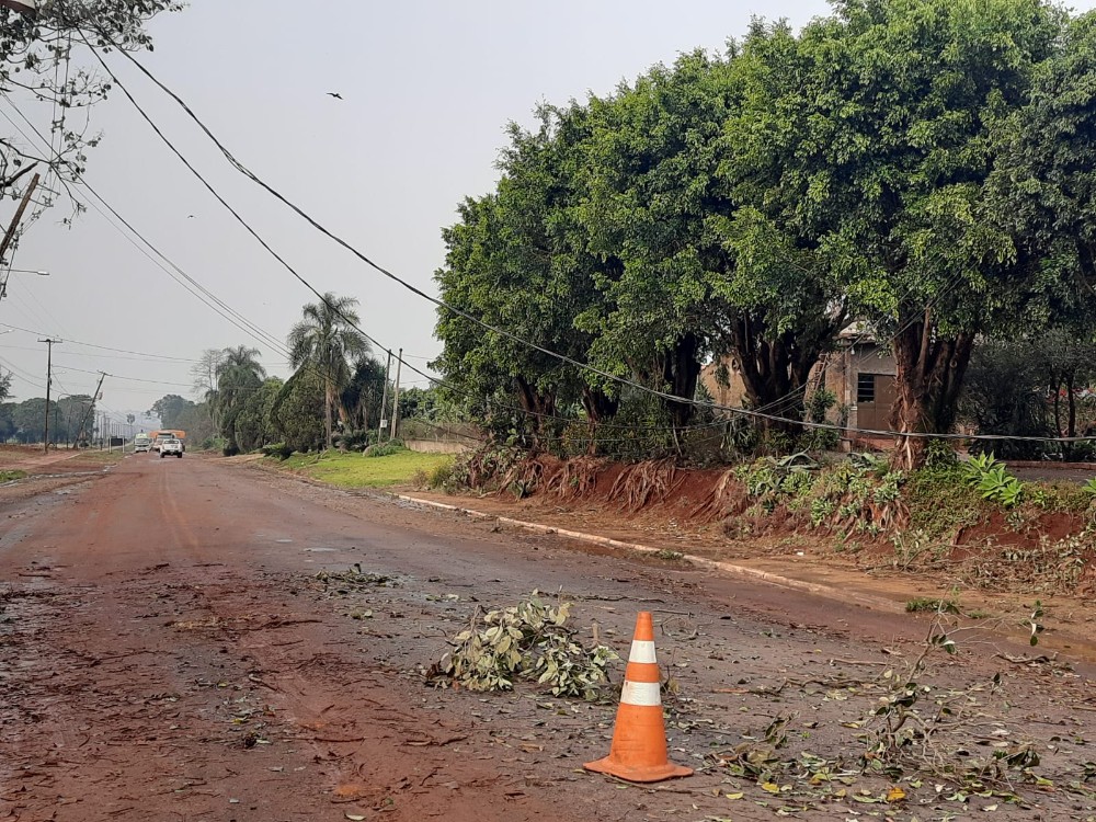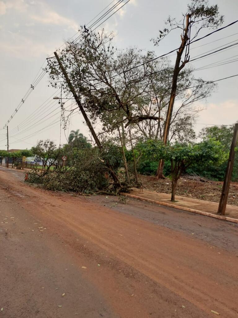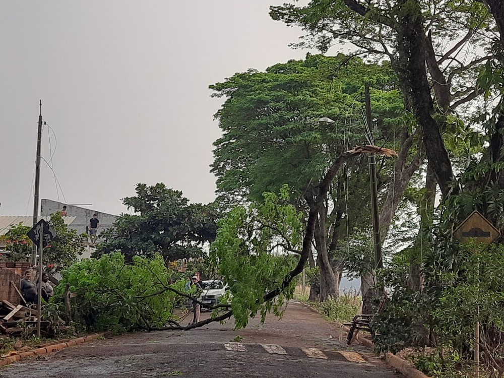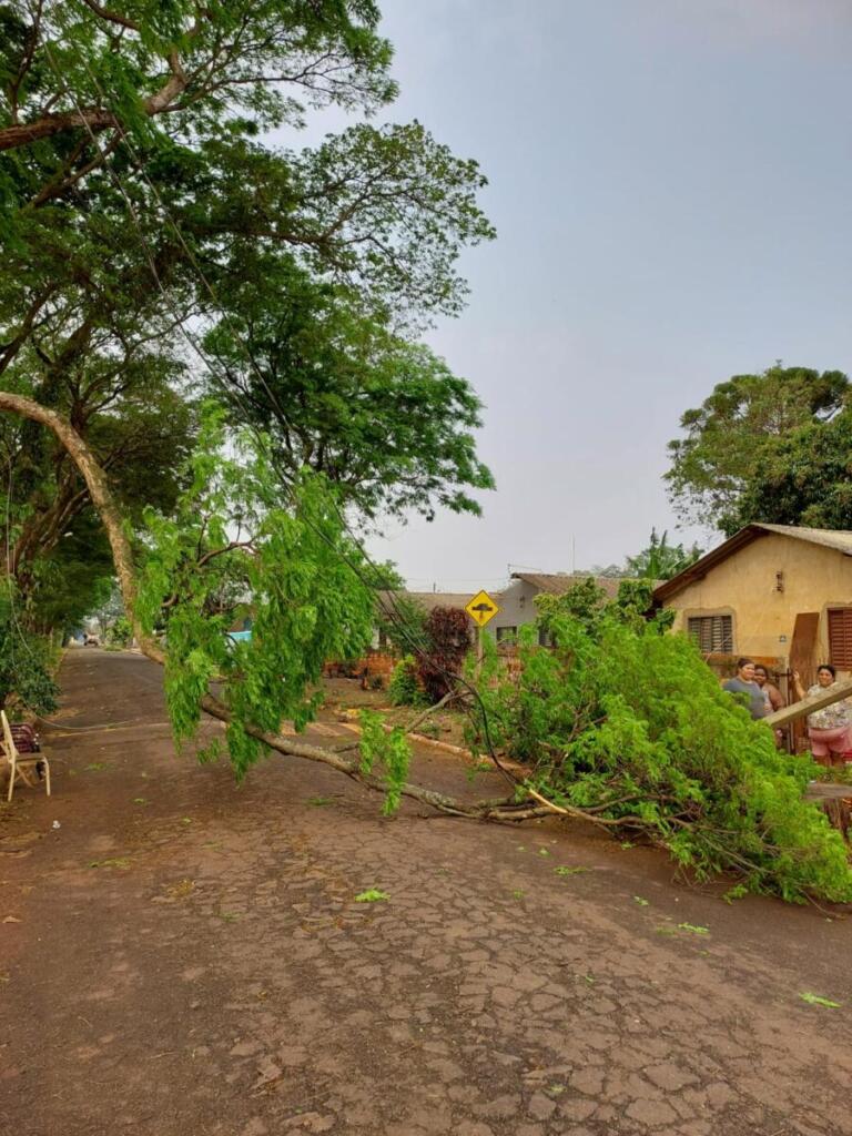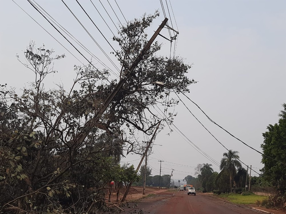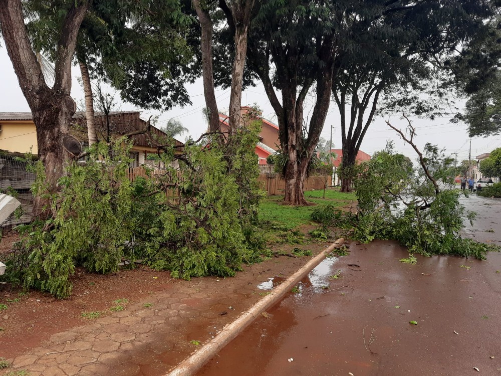 Os destelhamentos e prejuízos causados pelo vento, que durou apenas alguns minutos, foram registrados de forma descentralizada pela sede e parte do interior. Foram entregues lonas para alguns moradores do Bairro Recanto Feliz, onde houve destelhamento de residências. Também ocorreram rompimentos de cabos de energia e postes caídos na área central da cidade em direção à saída para Maripá. Ainda, destelhamento em barracões comerciais na cidade e também um barracão agrícola próximo do lago.