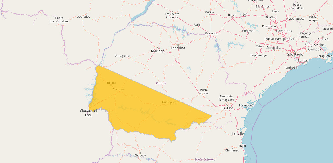 A Defesa Civil do Paraná emitiu, na tarde deste domingo (28), um alerta para chuvas intensas e raios no Oeste e Sul do Estado. Com validade de 6 horas, o aviso segue vigente até por volta das 19 horas deste domingo.