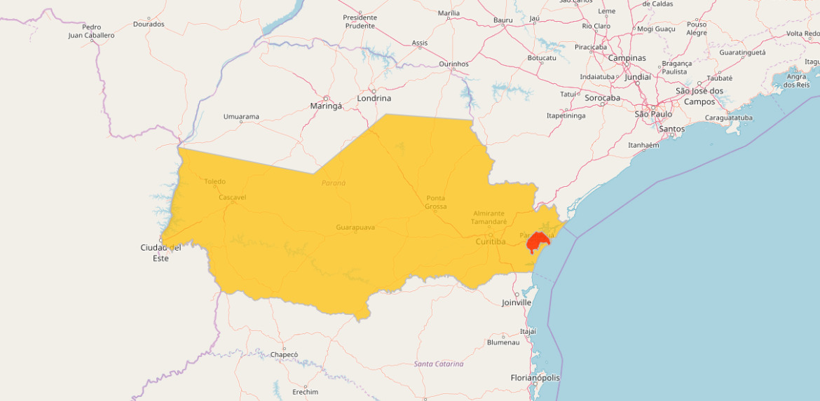 Já em Paranaguá, no Litoral do Estado, a Defesa Civil alerta para a possibilidade de alagamentos. Com severidade muito alta, o aviso perdura pelas próximas seis horas.