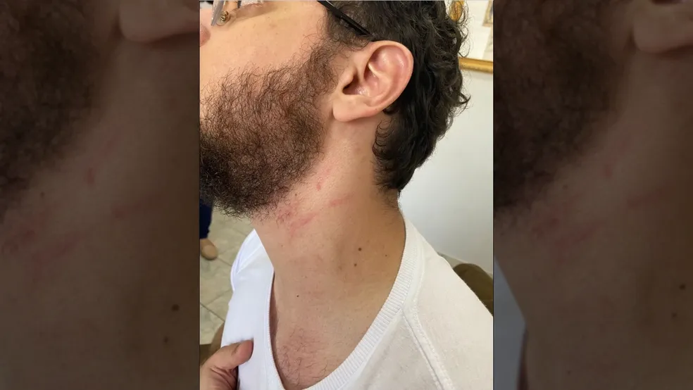 “Ele começou a gritar que ele era o delegado e que eu estava preso. Apertou o meu braço e puxou, eu tentei sair e foi quando ele me enforcou, me jogou contra o carro dele e aí ele puxou a pistola e apontou na minha cara”, conta.