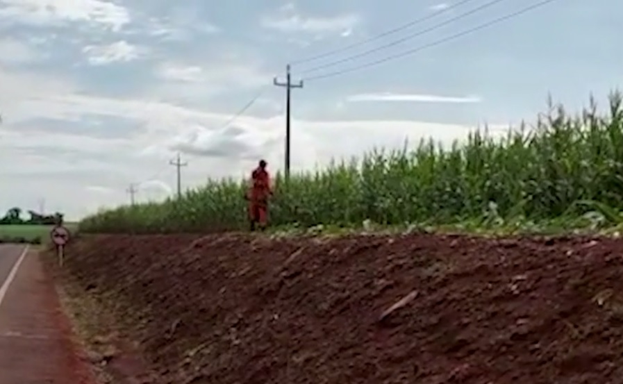 Um vídeo viralizou nas redes sociais nos últimos dias. Nele, um agricultor de Quatro Pontes mostra um trabalhador terceirizado do DER/PR roçando três carreiras de milho em uma propriedade ao lado da rodovia.