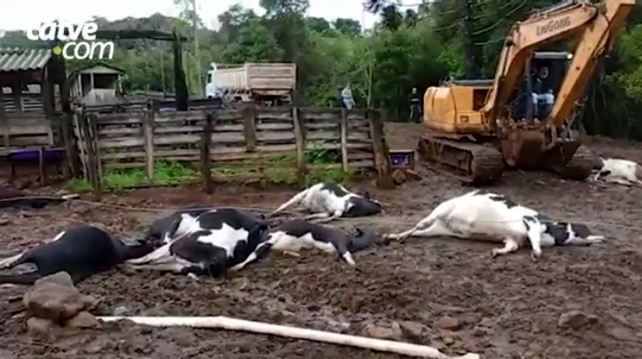 Todas as vacas leiteiras morreram e a maioria delas estava prenha. Os produtores contaram que a descarga foi tão forte que até peixes de um açude morreram.