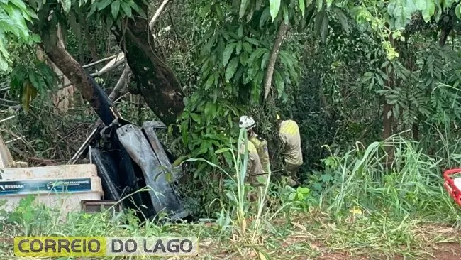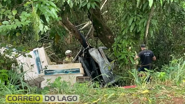 Um gravíssimo acidente registrado na manhã de quarta-feira (15) resultou na morte de duas pessoas na rodovia PR-497, no trecho entre Missal e Itaipulândia. O caso envolveu um caminhão carregado com peixes, que saiu da pista e, na sequência, foi tomado pelas chamas.