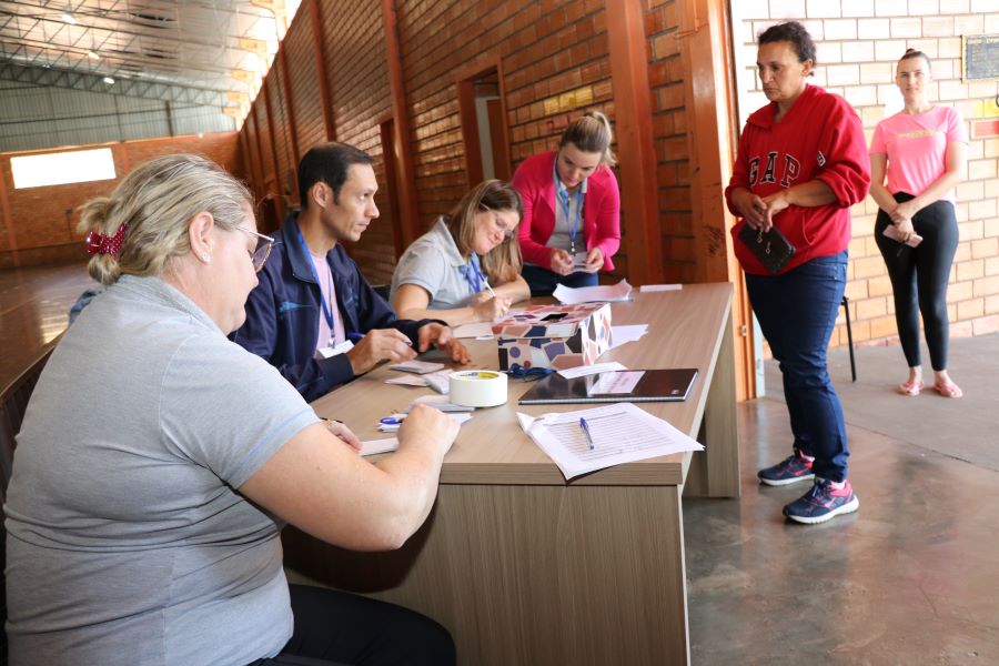 A Comissão de Eleição da Escola Municipal Marechal Deodoro de Pato Bragado iniciou às 9 horas desta quarta-feira (16), no ginásio do educandário, o processo eleitoral para direção da Escola Municipal Marechal Deodoro. A diretora Carine Schmidtke busca a reeleição.