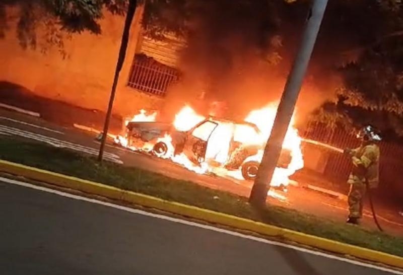 Já no início da madrugada desta terça-feira (04), um Ford Verona pegou fogo. O veículo estava estacionado na Avenida Maripá, próximo à Igreja Matriz São Pedro e São Paulo, na Vila Pioneira.