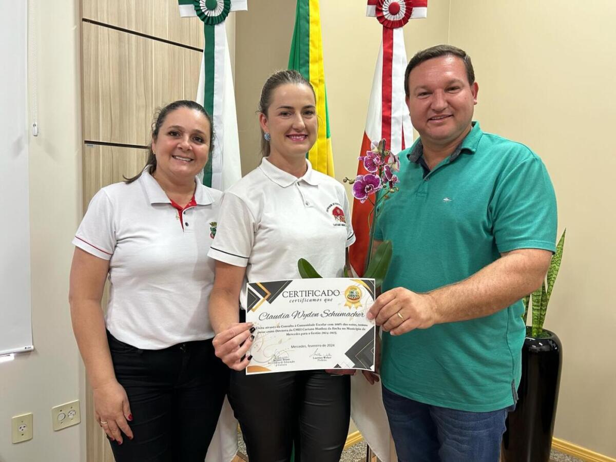 Diretoras e coordenadoras das escolas municipais de Mercedes foram empossadas na última sexta-feira (9). O ato ocorreu no gabinete do prefeito Laerton Weber. As diretoras foram eleitas para seus cargos, com mandatos até o final de 2025, enquanto as coordenadoras foram nomeadas pela Secretaria de Educação e Cultura.
