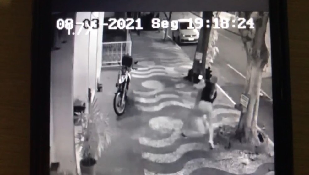 Uma câmera de segurança registrou o momento dos disparos. Nas imagens é possível ver um homem se aproximando da empresa.