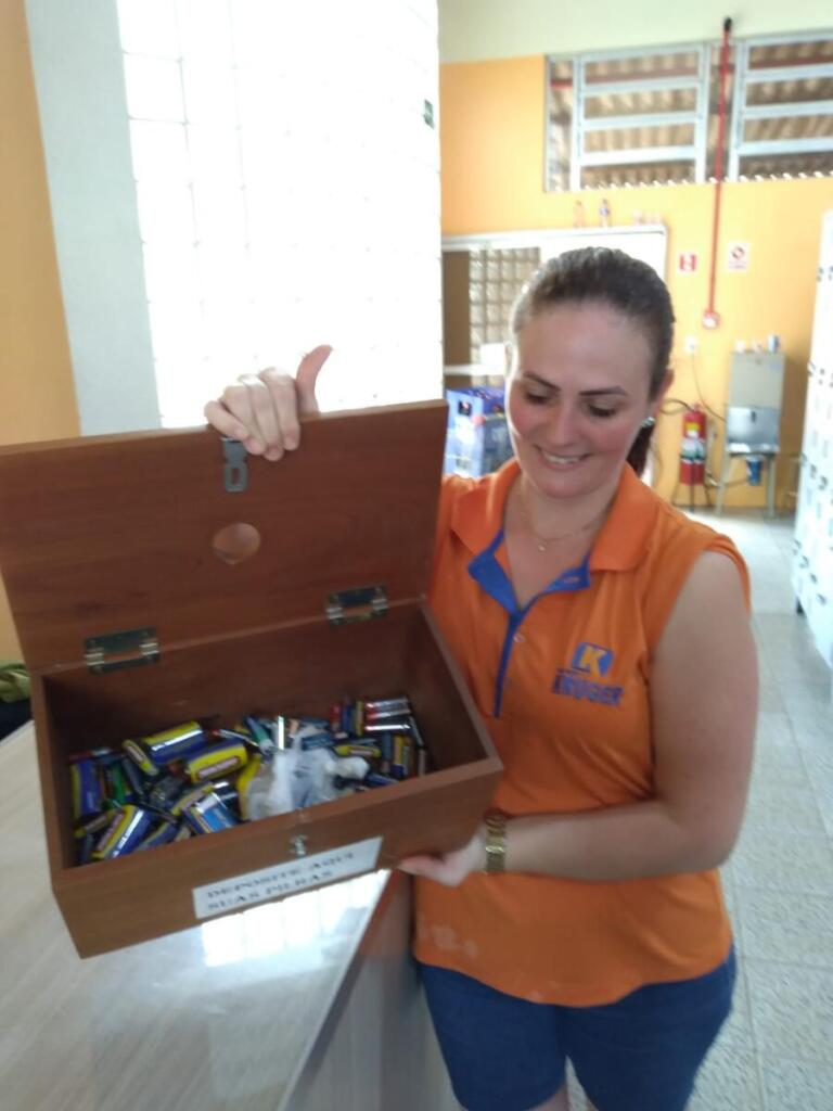 Já a coleta de pilhas e baterias usadas foi realizada através do projeto “Papa-pilhas”, idealizado pela cooperativa Sicoob (agência local). “O departamento é parceiro desta iniciativa. É disponibilizado um coletor para o depósito e todo o material coletado pelo Instituto Sicoob é destinado às intuições responsáveis, que cuidam da reciclagem. Essa campanha ocorreu duas vezes no ano passado”, conta a diretora do Departamento de Ação Ambiental, Rosa Maria Sulzbach.